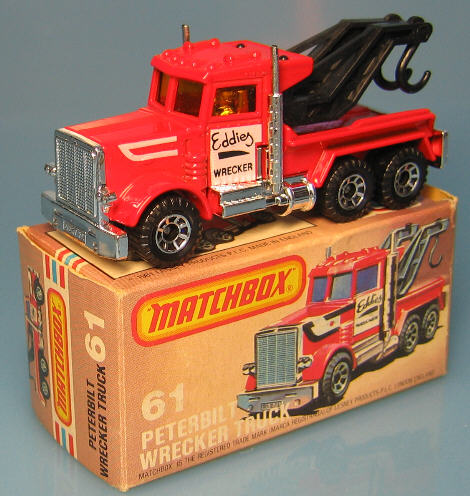 1982 war wohl das Jahr mit den größten Einschnitten in der Matchbox-Geschichte. Das traditionsreiche Unternehmen LESNEY musste Konkurs anmelden. Der Name Matchbox blieb aber erhalten. Unter Universal wurden die Matchbox-Modelle zunächst in Macau und später dann in Thailand und China produziert. Im selben Jahr erschien noch die Convoy-Serie. Die ersten Modelle sind also noch "Lesney - Made in England". Der Katalog von 1982 zeigte einige Trucks auf dem Titelbild. Die Convoy-Serie ist für die Sattelschlepper die Nachfolgeserie der Two Packs, d.h. es gab jetzt 2 Serien. Auch die 1982 neu erschienenen Superfast-Modelle sind "Made in England" heute begehrte Sammlerstücke. Beispiele sind 26 Cable Truck , 35 Zoo Truck, 42 1957 Ford Thunderbird , 51 Pontiac Firebird , 54 NASA Tracking Vehicle , 61 Peterbilt Wreck Truck , 66 Tyrone Malone Super Boss . Auch neue Designs bei Modellen sind heute gefragte Objekte. Bei Nr. 6 Mercedes-Benz 350 SL wurde 1982 noch einmal eine Variante in blau ohne Dach herausgebracht. Auch die Box zeigt diese Variante.  |