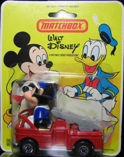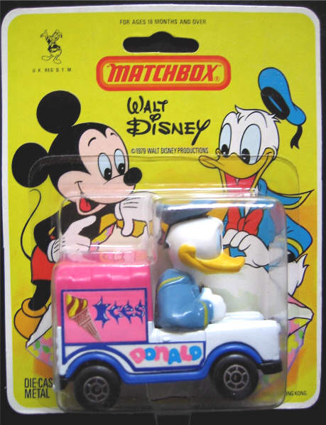 1979 tauchte die Disney-Serie auf dem Markt auf (zunächst 9 Modelle). Bekannte Figuren wie Donald Duck oder Micky Maus saßen in verschiedenen Fahrzeugen. Diese Serie war ausschließlich für Kinder bestimmt. 1980 erschienen noch 3 weitere Modelle, dann wurde die Serie eingestellt. Diese insgesamt 12 Modelle sind für Sammler besonders attraktiv. Durch die übermäßige Verwendung als Spielzeug existieren heute kaum noch perfekt erhaltene Exemplare. Die Modelle erschienen außerdem nur in Blisterpackungen und sind außerdem auch für Disney-Sammler interessant. Das seltenste Modell dieser Serie ist WD 3 Goofy im Käfer mit Ohren, die nicht am Körper enden ("flying ears"). Da dies ein Sicherheitsrisiko für Kinder darstellte, sind die Formen für die Modelle umgearbeitet worden. In diesem Jahr wurde die "Two Pack" Serie in "900 Range" umbenannt. Es erschienen jetzt auch Packungen mit exklusiven Anhängern, wie z.B. der Glider-Transporter (mit Segelflugzeug), der Cattle-Trailer und der Tanker Trailer. Ebenfalls neu und unter dieser Bezeichnung kamen die ersten Sattelschlepper-LKW auf den Markt. Die Zugmaschinen waren ungefähr so groß wie die normalen Modelle, jedoch mit Trailer waren sie ca. 16 cm lang. So gab es jetzt u.a. einen langen Tankwagen, einen Container Truck und auch einen Bootstransporter.  |